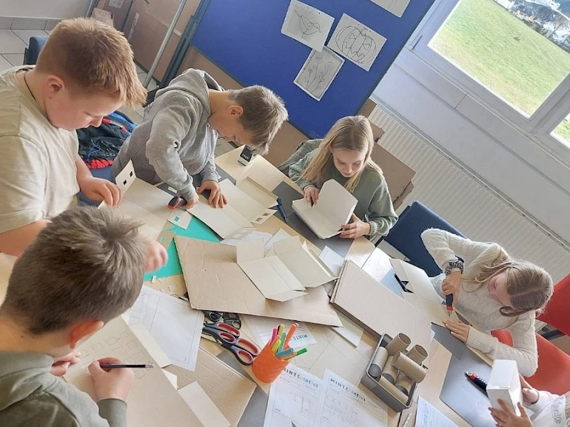 Mit großer Freude nahm die 1C-Klasse am Workshop „Creative Architecture“ teil. Die Kinder wurden zu Architekten ihrer eigenen Fantasiestadt und durften sich mit Pappe, Holz und verschiedenen Stoffen frei entfalten. Dabei entstanden viele kreative Bauwerke, die sie am Ende stolz mit nach Hause nahmen.