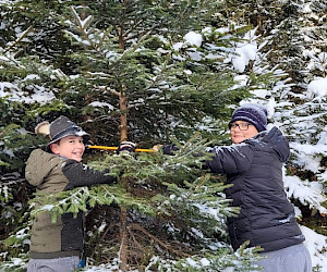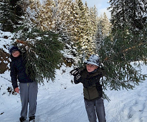 Die 1A Klasse wünschte sich einen Christbaum für die Klasse. Da eine Lehrerin einen eigenen Wald besitzt, durften sie zwei Schüler begleiten und einen Baum aussuchen. Dabei wurde nicht einfach „der Schönste“ ausgesucht – vielmehr achteten sie genau darauf, welcher Baum aus forstlicher Sicht gefällt werden sollte.