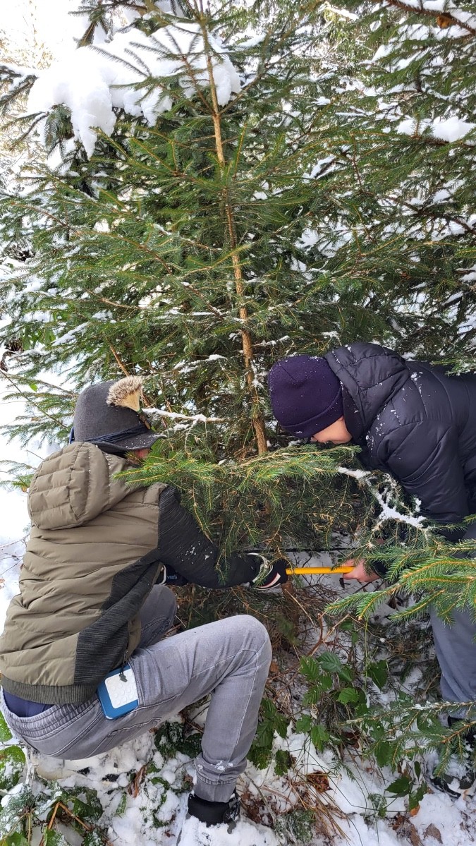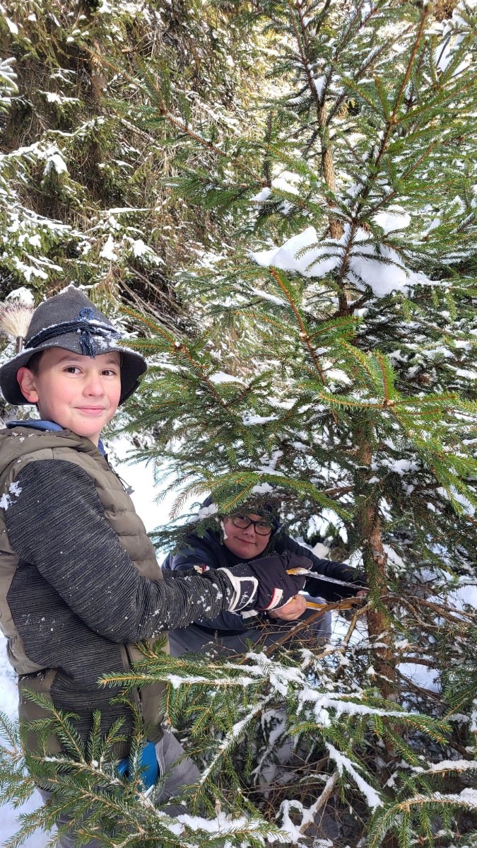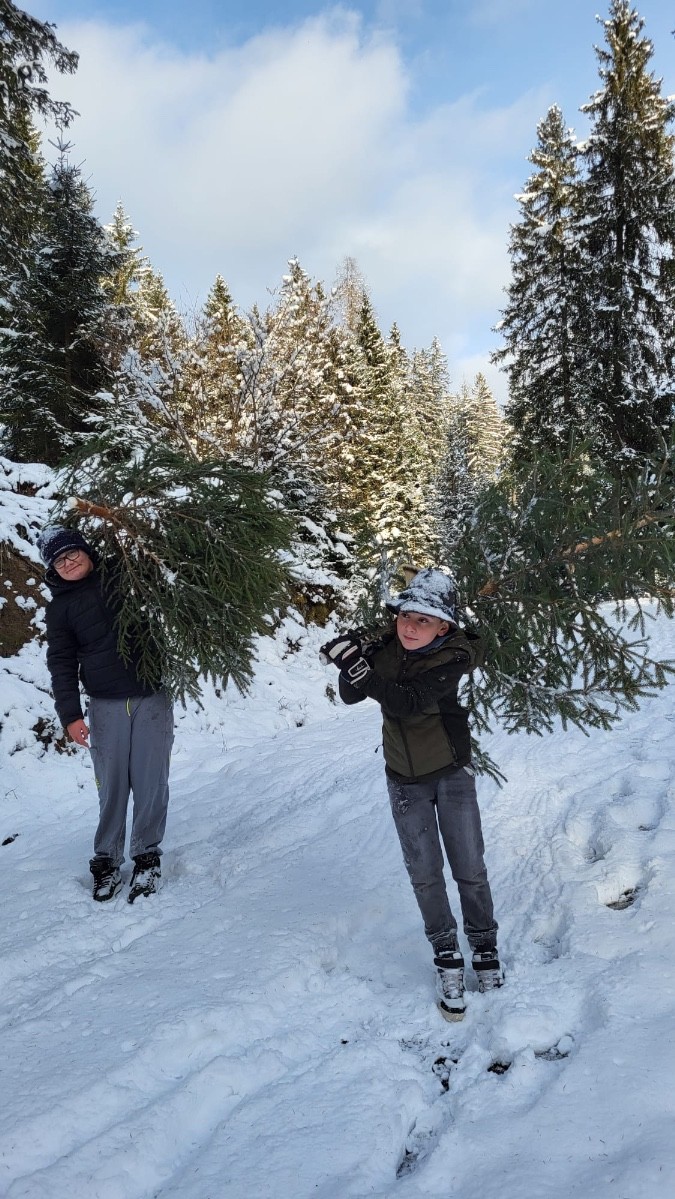 Die 1A Klasse wünschte sich einen Christbaum für die Klasse. Da eine Lehrerin einen eigenen Wald besitzt, durften sie zwei Schüler begleiten und einen Baum aussuchen. Dabei wurde nicht einfach „der Schönste“ ausgesucht – vielmehr achteten sie genau darauf, welcher Baum aus forstlicher Sicht gefällt werden sollte.
