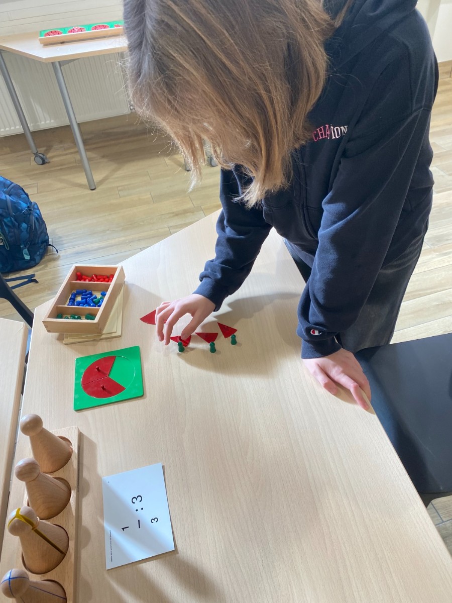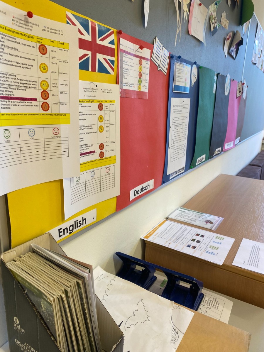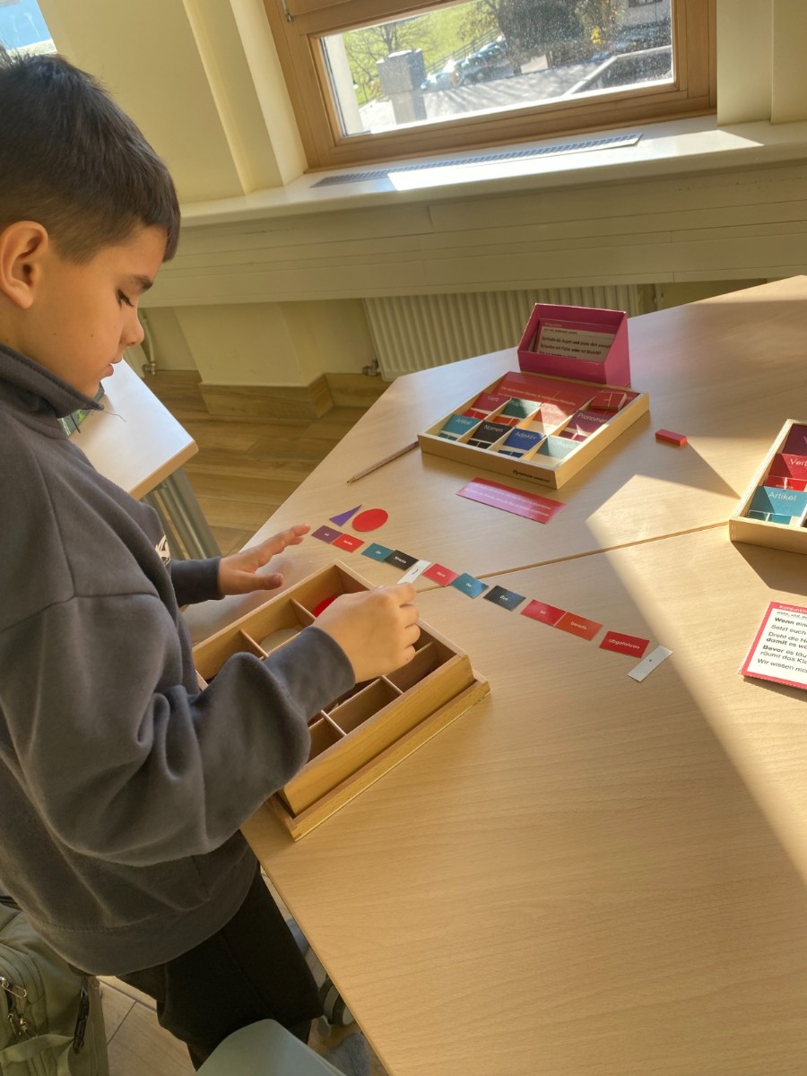 So sieht eine normale Schulwoche in der 2A Klasse aus. In den Gegenständen Deutsch, Mathematik, Englisch, Biologie, Geschichte und Geografie dürfen die Kinder ihr Wissen auch in Form einer Planarbeit bzw. Freiarbeit festigen. Dazu stehen uns immer u.a. Materialien aus der Montessori Pädagogik zur Verfügung. Die Schüler*innen werden von einem engagierten Lehrerteam begleitet, das sich u.a. aus zwei Pädagog*innen mit einer absolvierten Montessori Ausbildung zusammensetzt. „Wir haben uns zum Ziel gesetzt, dass die Kinder selbsttätig und jedes Kind in der Kleingruppe im Austausch zum*r Experten*in werden kann, somit seinen Selbstwert steigert und dadurch selbstsicherer durchs Leben gehen darf“, so das Lehrerteam. Die Fotos zeigen einen Einblick unserer Arbeit in der 2A Klasse. Auch im DAZ-Unterricht lassen sich die Montessori Sprachmaterialien sehr gut einsetzen und sind sehr vielversprechend. Zwischendurch darf ein bisschen Bewegung mit einer kurzen Yogaeinheit vor jeder Biologie Stunde nicht fehlen.